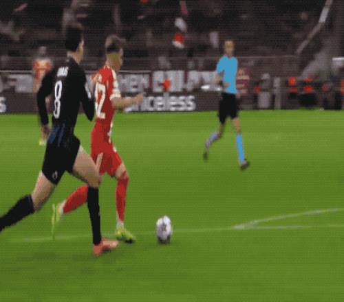 第20分钟,拜仁的进攻从右路逐渐转移到了左路,迪亚斯加速突破,小角度爆射,门将封住了近角。