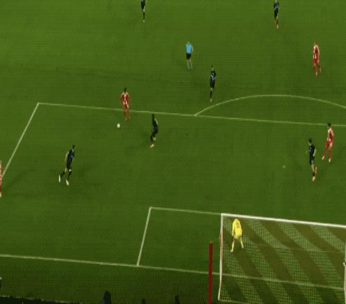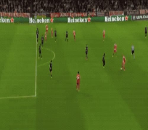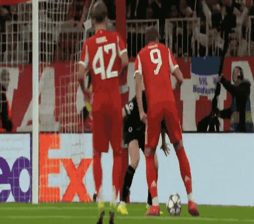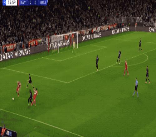 第5分钟,难得首发的17岁小将卡尔钟摆式过人后,面对包夹起脚远射,打出精彩世界波,这是卡尔的欧冠首球,卡尔也超越穆西亚拉,成为拜仁欧冠进球最年轻的球员。