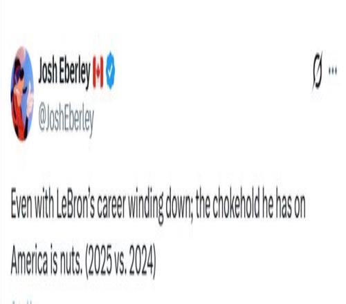 詹姆斯的人气继续断层优势霸榜,NBA记者Josh Eberley晒出了今年和去年的对比图,感慨道:“即使勒布朗的职业生涯已接近尾声,但他在美国的影响力依然惊人。(2025年对比2024年)”