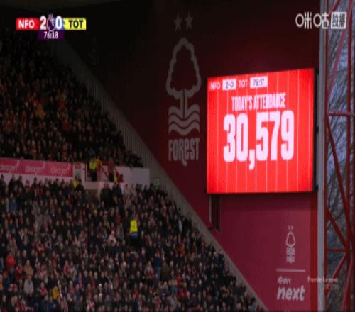 第28分钟,格雷后场被抢断,奥多伊推射空门,诺丁汉森林1-0领先热刺