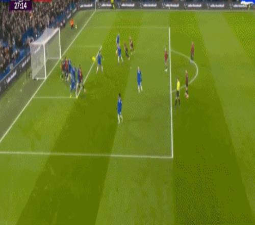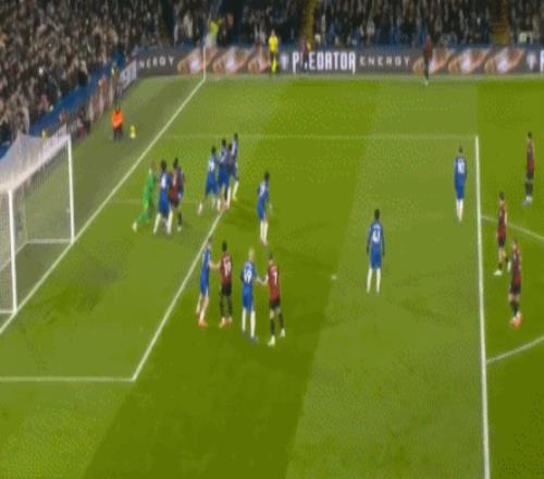 第79分钟,切尔西战术角球配合,埃斯特旺右路传中被解围,恩佐禁区内兜射,皮球擦着横梁上沿高出。