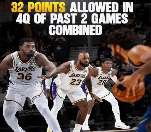 但事实是,即便湖人防守端确实做得很糟糕,但他们却有自己的优势所在。数据显示,本赛季至今当湖人半场领先时,战绩高达15胜0负,无一败绩;当他们带着优势进入第四节时,战绩是更为恐怖的18胜0负,均排名全联盟第一位,这显示了他们在取得领先优势时拥有绝对稳定的控分能力。