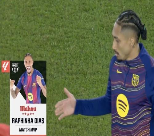 打入一球,拉菲尼亚当选巴萨vs马竞全场最佳球员 -