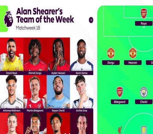 希勒评英超本轮最佳阵容:维尔茨、谢尔基、厄德高在列 -