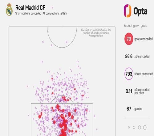 皇马2025年已失80球,失球数位列五大联赛第二 -